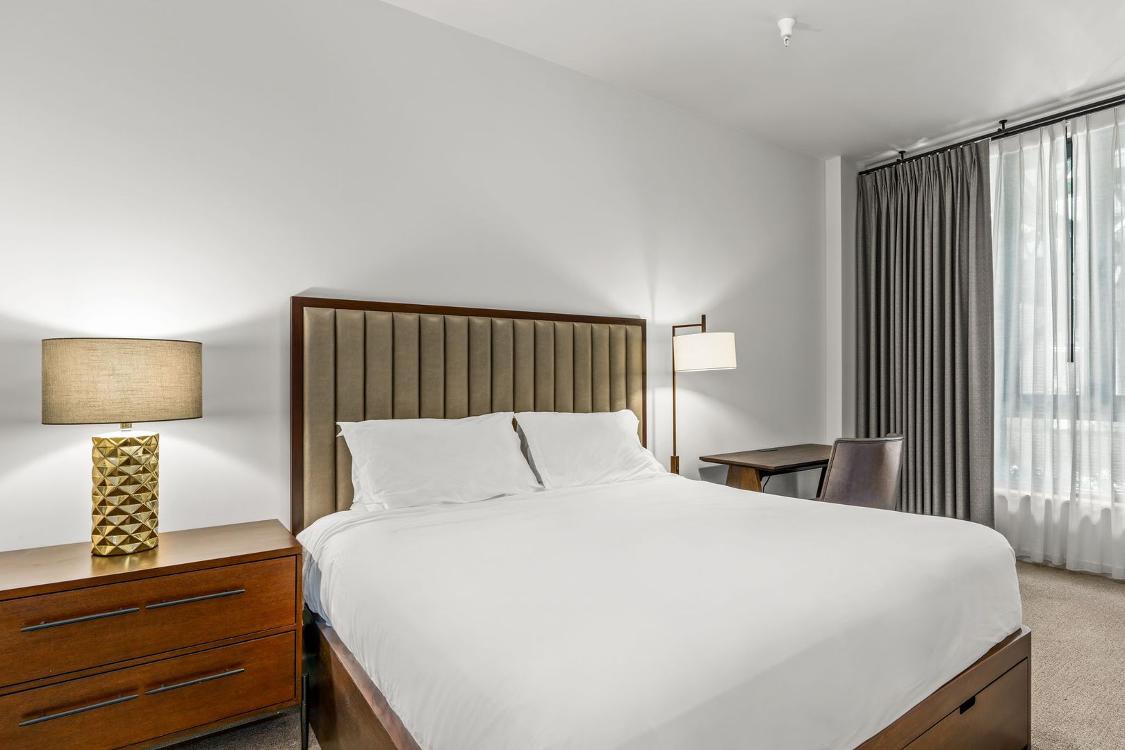 This unit is furnished and available for 3-month + lease terms. All utilities are included as well as internet, bi-monthly housekeeping, cable television, and linen and towel services.