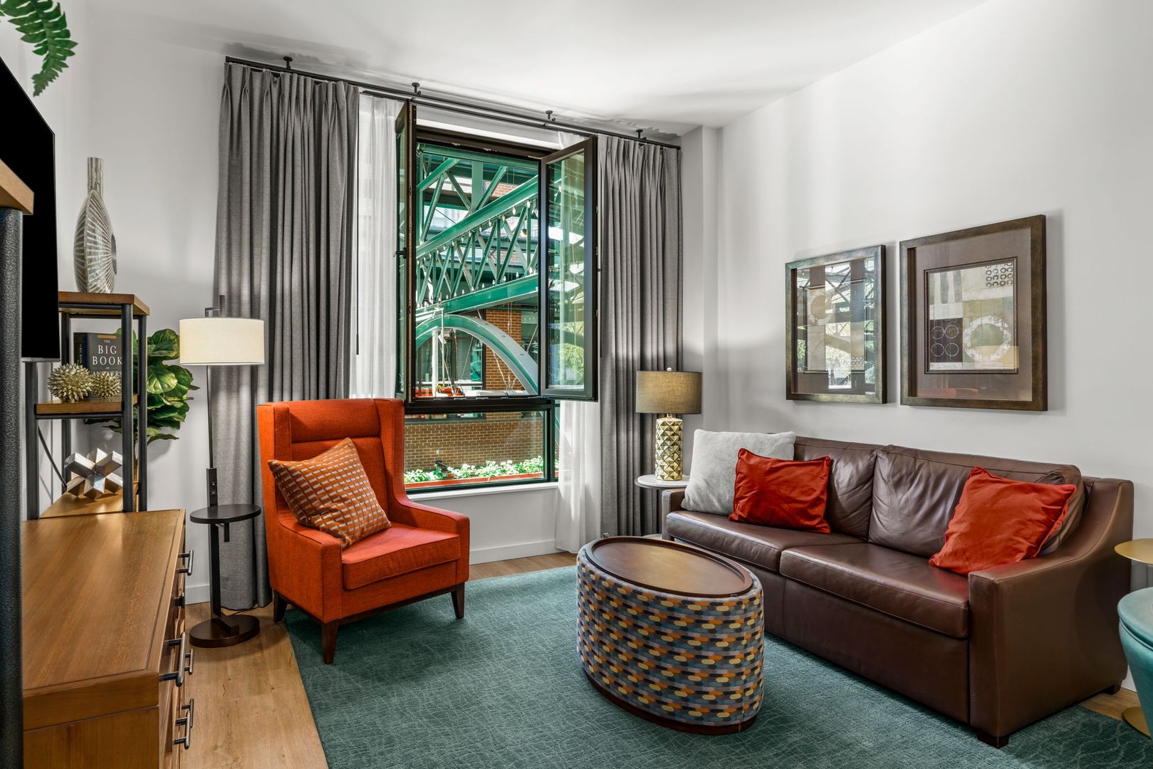 Eugene isn’t ordinary and neither are you. So, kick off your shoes and discover what it means to live inspired at Gordon Lofts. Rising from the 5th Street Public Market, life here positions you at the crossroads of convenience and distinction – from access to an abundance of charming eateries and retail spaces to community fun in your own front yard and all that makes the downtown district unique (including art and culture, picturesque parks and lively nightlife). Looking to stay in? Entertain on the beautiful, year-round rooftop lounge with breathtaking views from Skinner Butte to Spencer Butte: Enjoy access to the full kitchen, barbecues and wine locker. Whether you choose to sit back and savor a local game on a large, flat screen television or catch up with friends, be sure to catch that spectacular sunset. Pet friendly and upscale without pretense, the Gordon Lofts is the ideal place to call home.