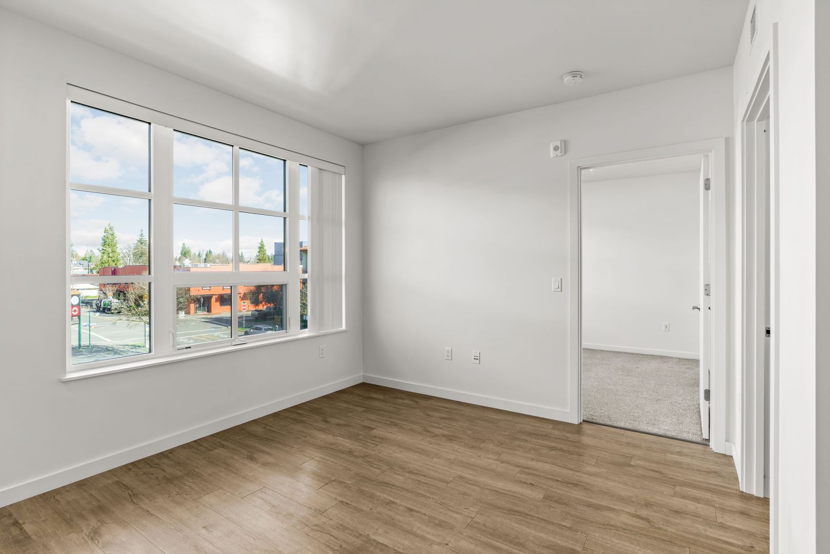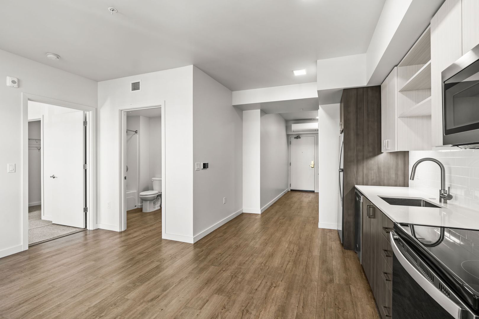 The Oak C floorplan is a traditional unfurnished one-bedroom, one bathroom apartment. Its floorplan includes a washer/dryer, electric oven and cooktop, microwave, dishwasher, available fiber internet, and air-conditioning unit. This unit features LVP wood-stained planking through the kitchen and living room and a carpeted bedroom.*Actual floor plan availability is subject to change.